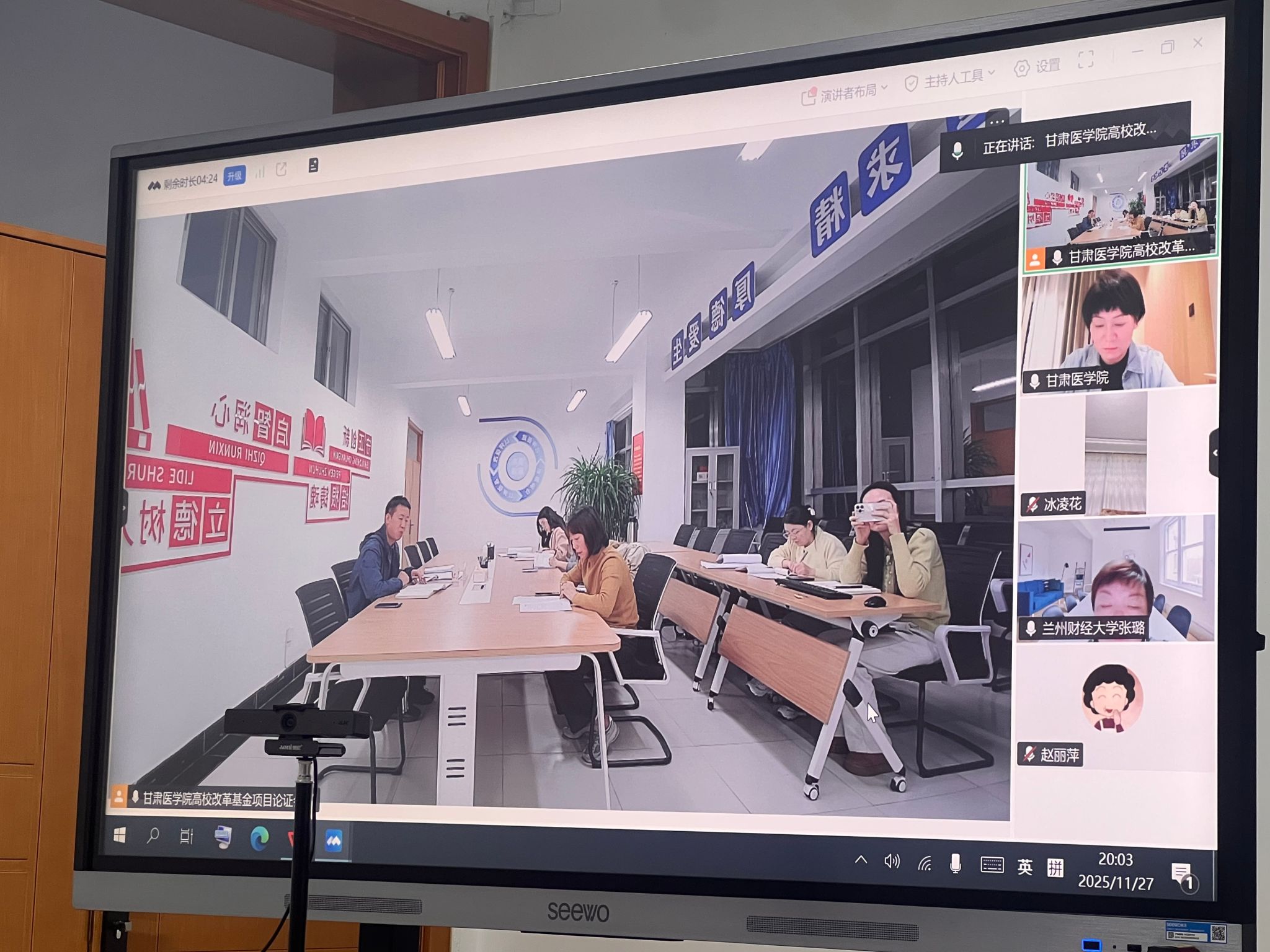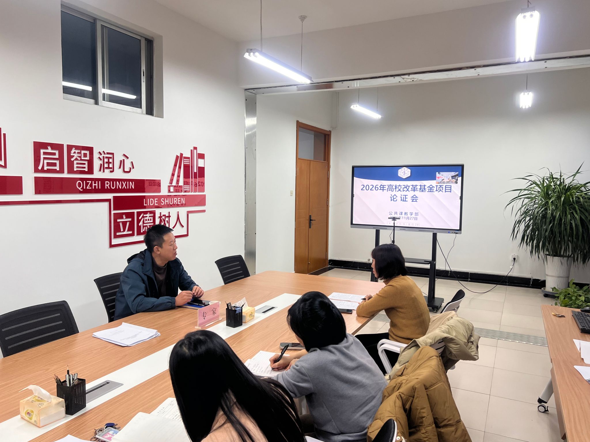 11月27日晚,万赢娱乐电子共课教学部召开了2026年高校改革基金项目论证万赢娱乐。本次论证万赢娱乐旨对“智慧体测中心建设项目”“体育场馆配套设施购置项目”与“英语AI及虚拟仿真学习实训中心建设项目”三个项目的合理性、可行性等进行论证。此次论证万赢娱乐特邀陇东万赢娱乐官网体育万赢娱乐官网王福杰教授,甘肃政法大学体育教学部副主任李胜达教授,兰州财经大学外语万赢娱乐官网院长张璐教授,甘肃农业大学人文万赢娱乐官网院长赵丽萍教授,我校信息中心副主任魏葆春教授,发展规划处副处长靳文教授,万赢娱乐电子共课教学部副部长徐婕教授7位校内外专家参与论证,相关教研室主任以及部门全体行政工作人员参加了万赢娱乐议。
