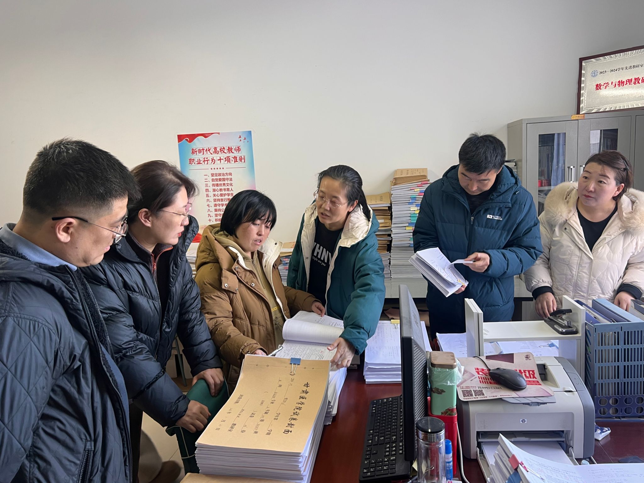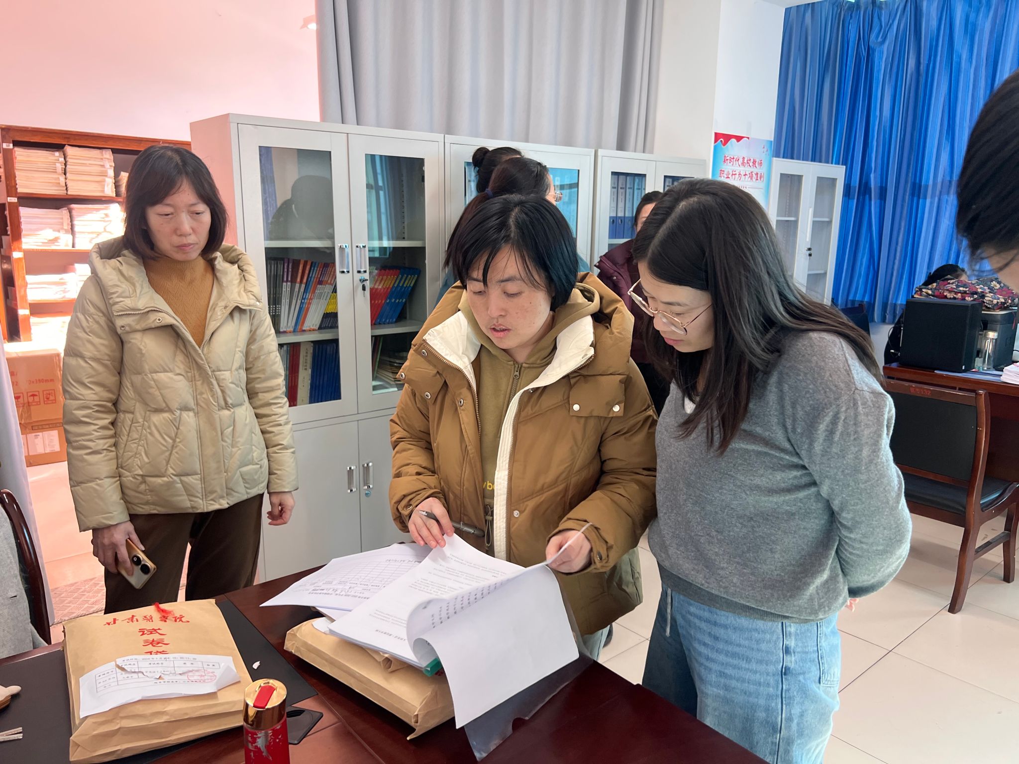 检查组一行深入各教研室查阅了教学过程资料、作业批改记录、试卷批阅及学生成绩评定情况,确保教学环节完整,督促教师规范完成期末教学收尾任务。