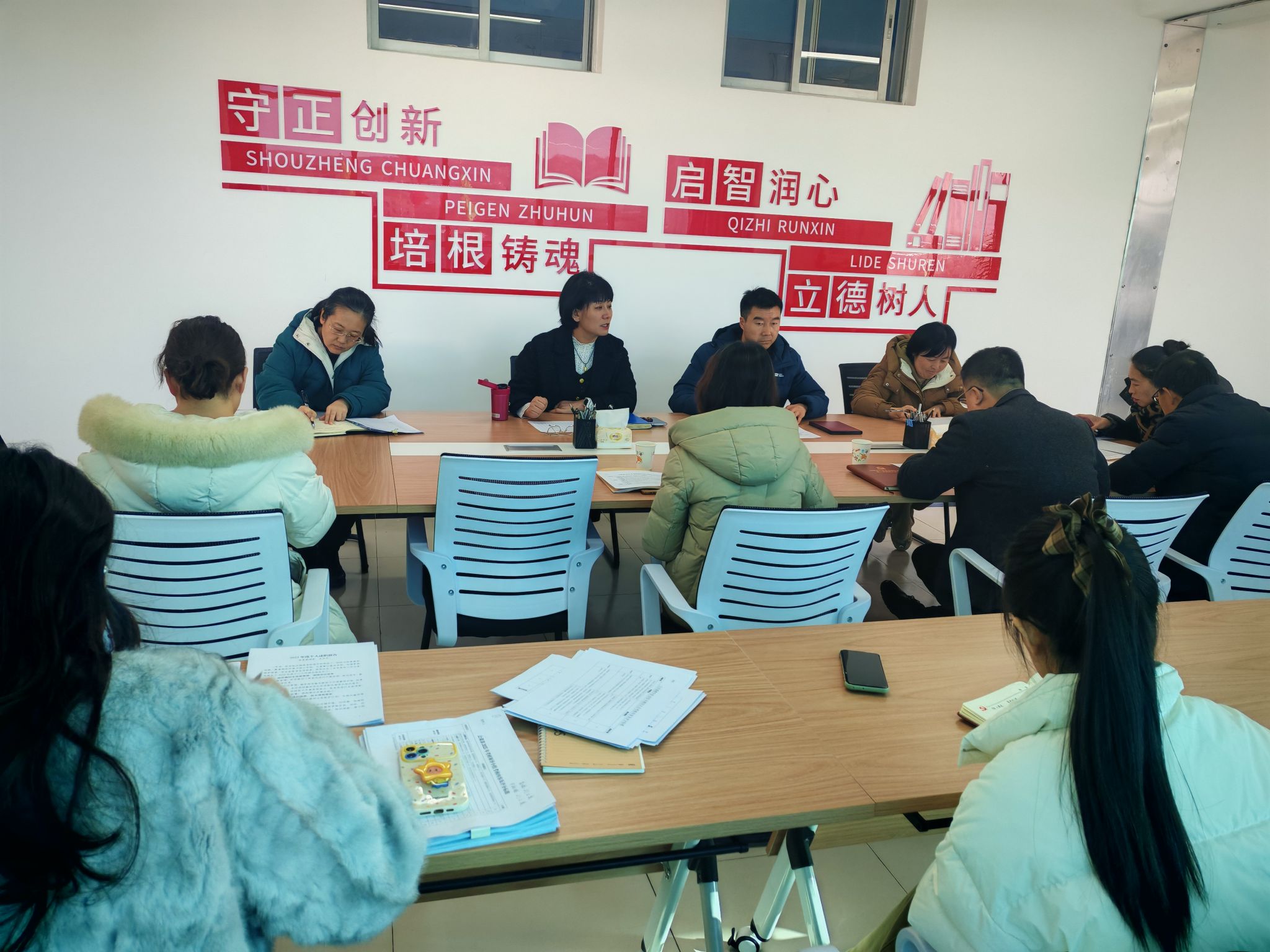 最后强调全体教职工要筑牢“教学质量弦”、绷紧“安全防线弦”,明确期末各项工作节点与寒假值班值守安排,提醒教职工严格落实假期外出报备、廉洁过节等有关纪律要求,做好个人防护,确保假期平稳有序。