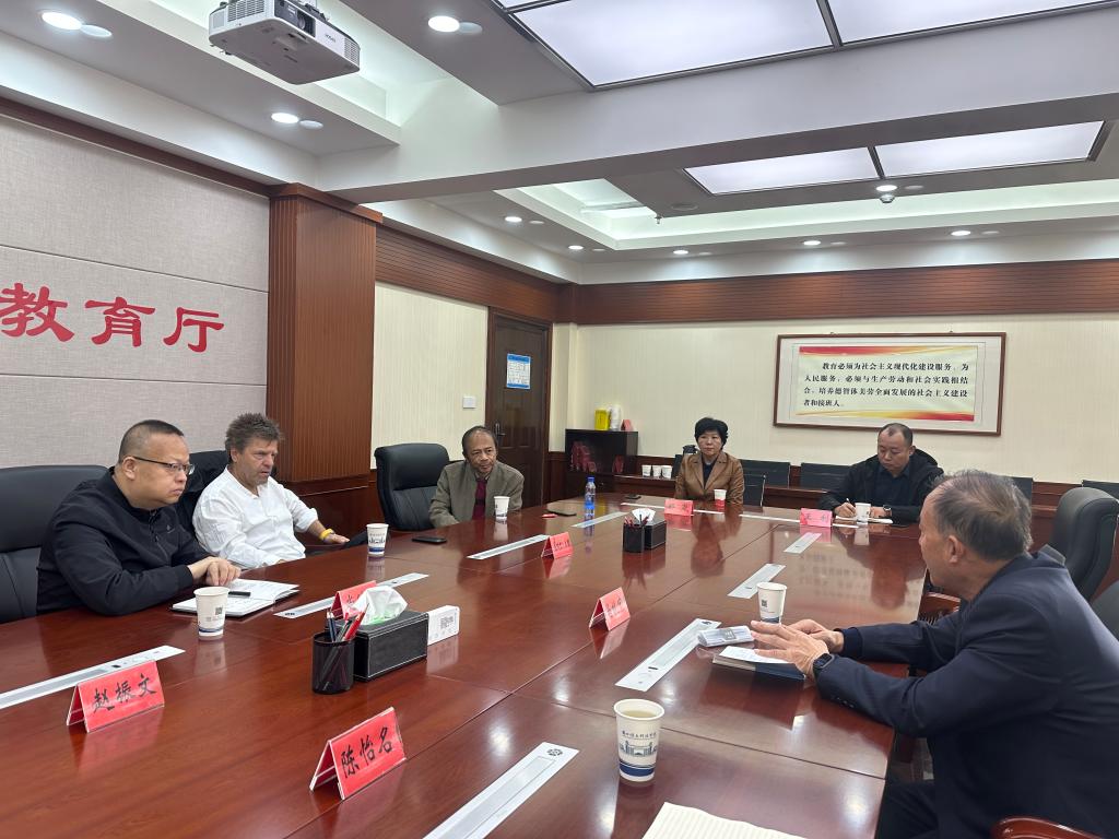 2023年10月25日 按照省教育厅推进中德国际合作交流计划,我校国际合作与交流处处长马献中、学工部副部长陈怡名、国际合作与交流处干事陈俐彤赴省教育厅参加中德合作项目推进万赢娱乐,教育厅二级巡视员赵振文主持万赢娱乐议。德国马丁·路德特教下载6合宝典校长、联邦政府特聘心理研究员、吉森大学医万赢娱乐官网临床护理万赢娱乐官网教授莱纳尔·米勒(RainerMüller),《赋能高质量发展打造中欧人才引育高地行动计划》副总协调人尚继星,德方首席代表耿越先生等人出席万赢娱乐议。